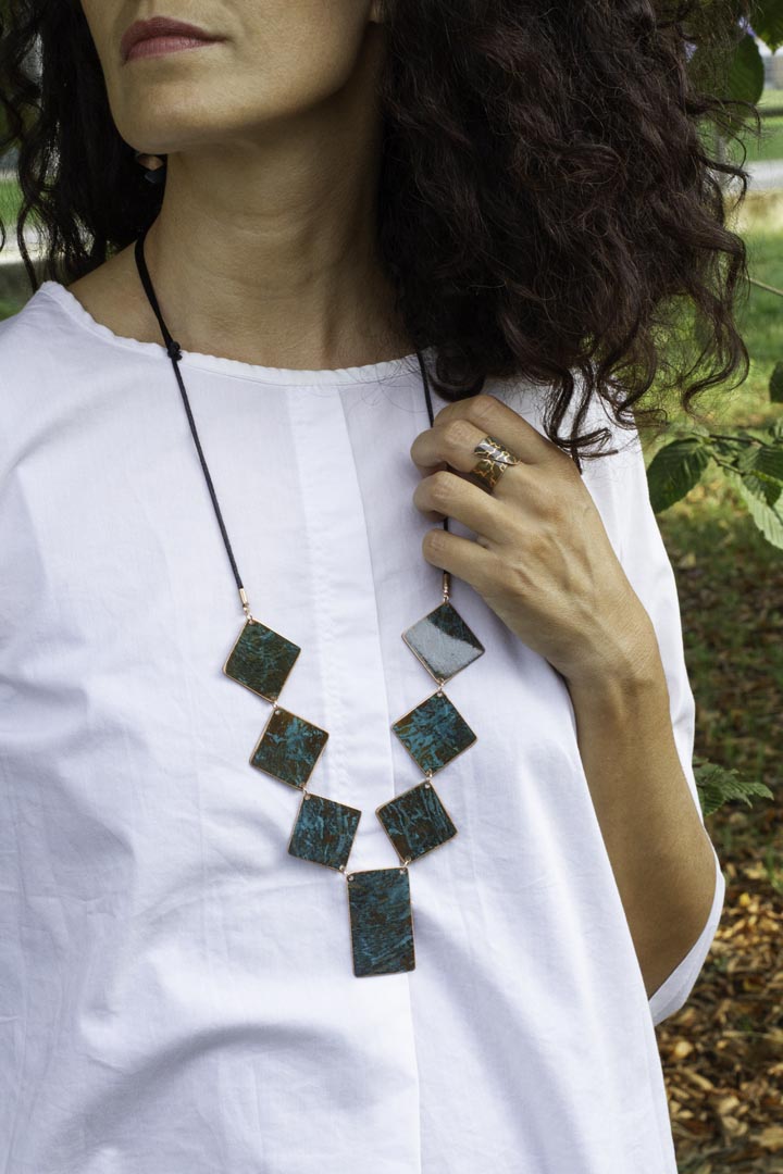 Sia i gioielli sia le lampade sono realizzati artigianalmente, non in serie, ed รจ proprio per questo che i colori dati dallโossidazione possono variare di volta in volta e si possono trovare delle piccole imperfezioni (segno distintivo del fatto che sono fatti a mano)