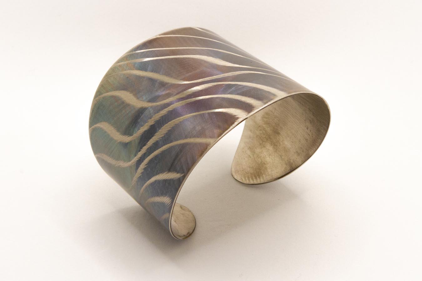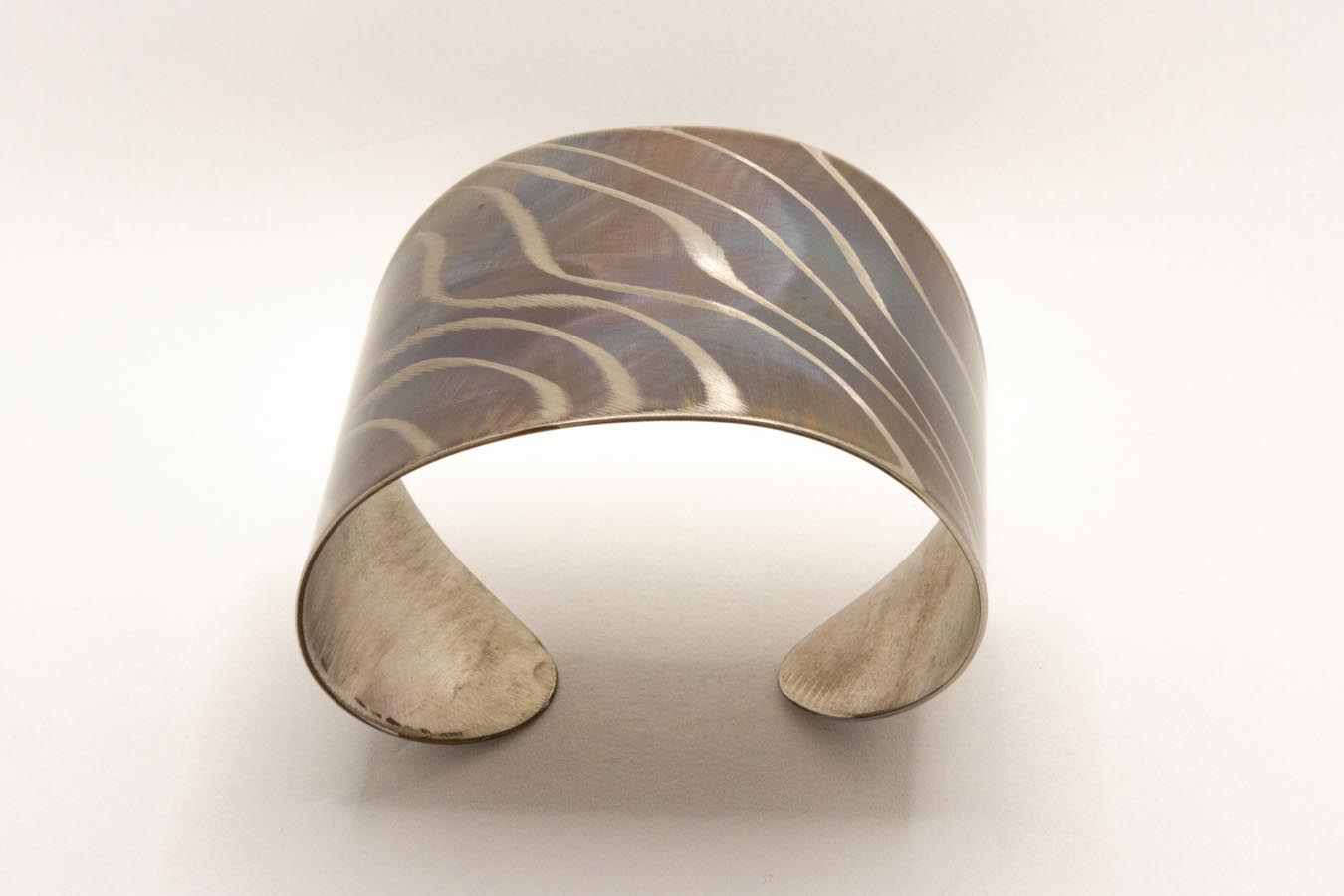 Bracciale a fascia in acciaio ossidato con lavorazione