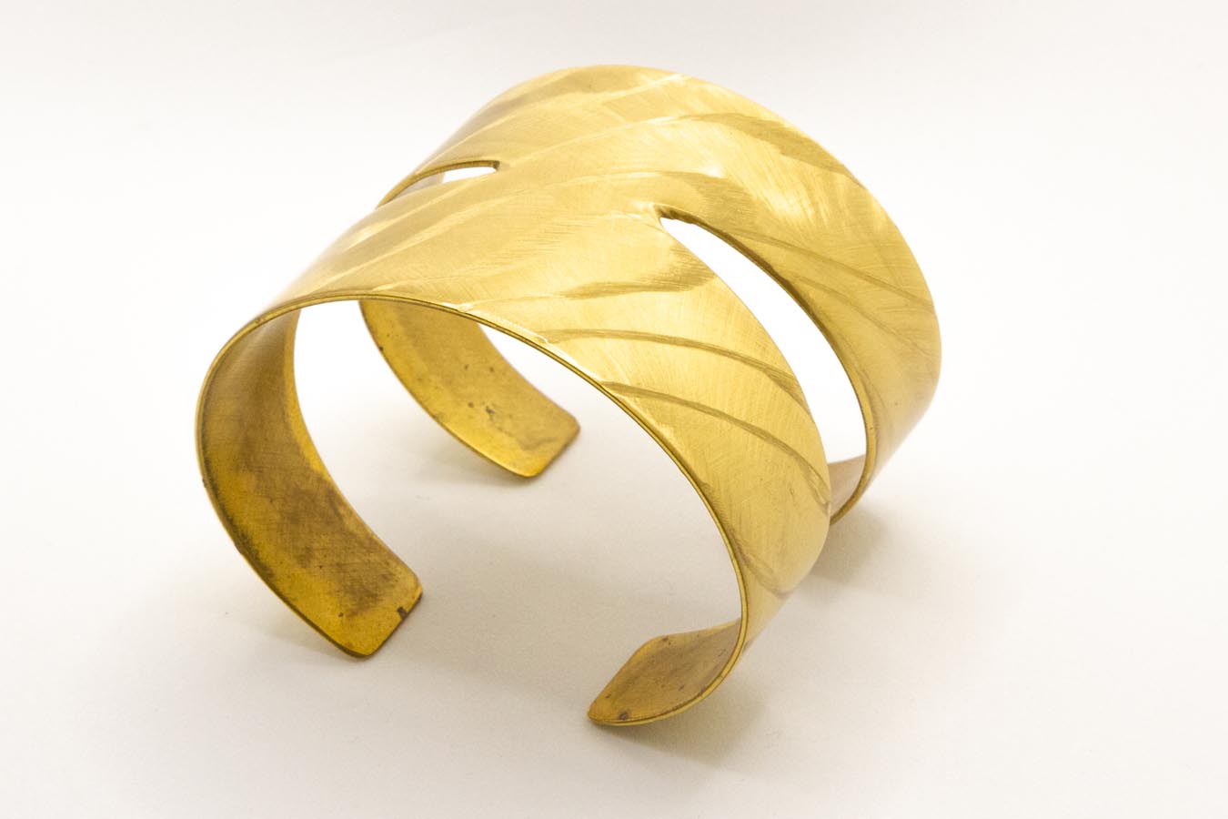 Bracciale tipo schiava in ottone, con lavorazioni. Altezza 5 cm.