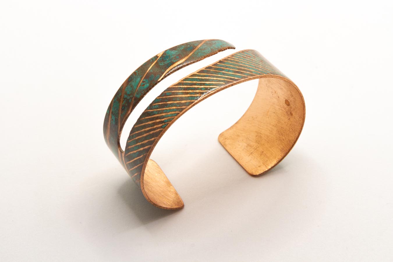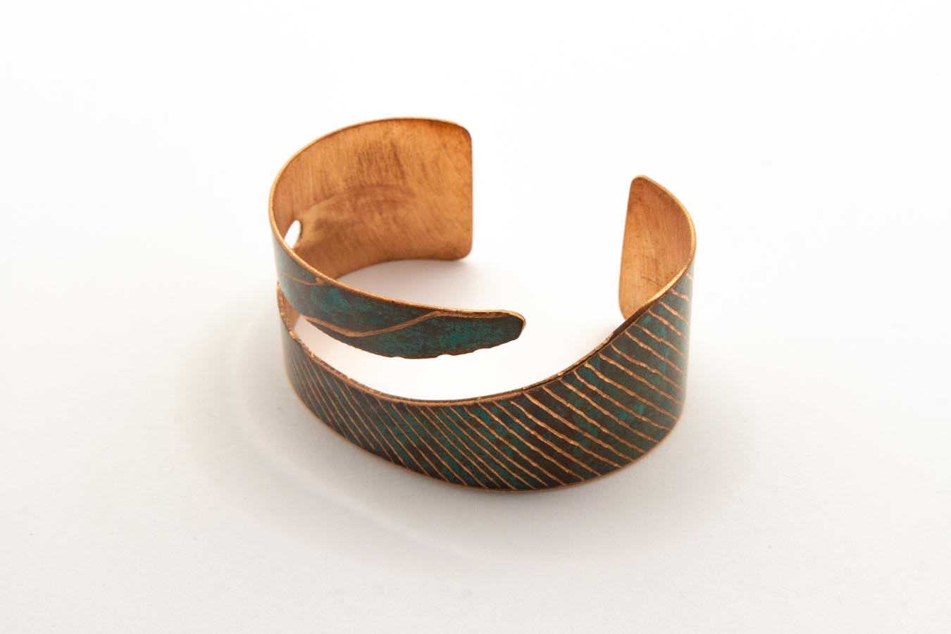 Bracciale in rame ossidato a freddo con doppia lavorazione. Misura grande adattabile