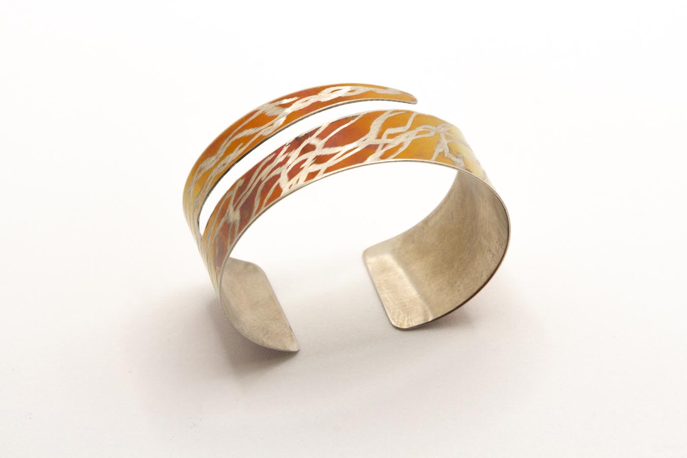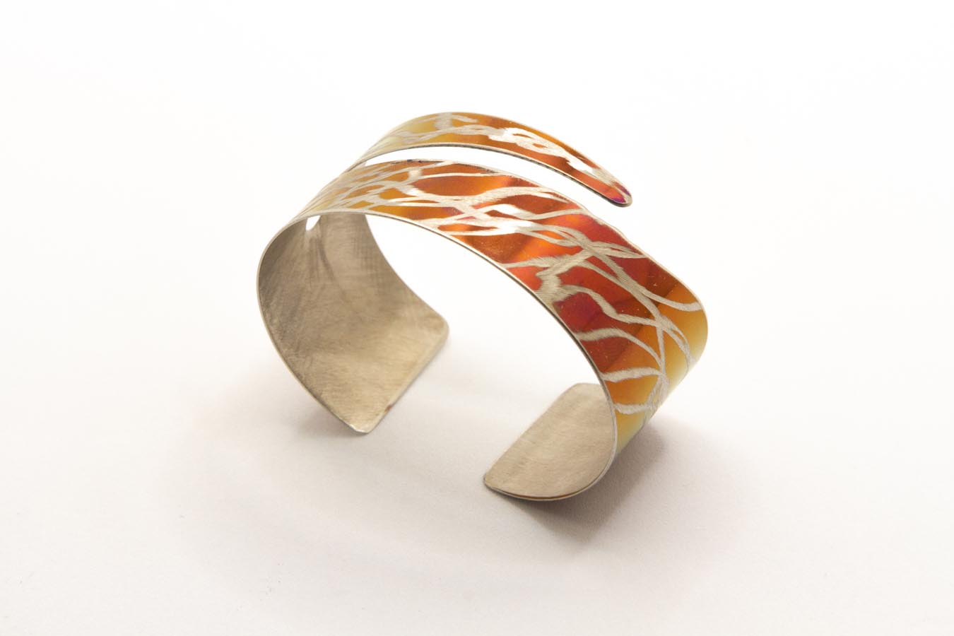 Bracciale a fascia con taglio in acciaio viola con lavorazione. Misura piccola adattabile
