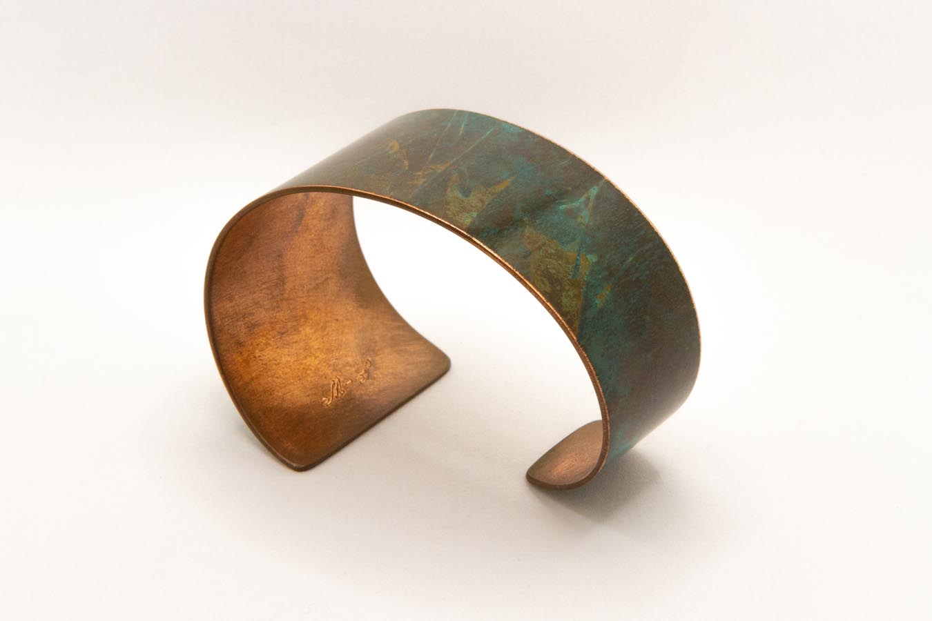 Bracciale a triangolo in rame ossidato. Misura adattabile. Il colore può variare di volta in volta in base all’ossidazione.