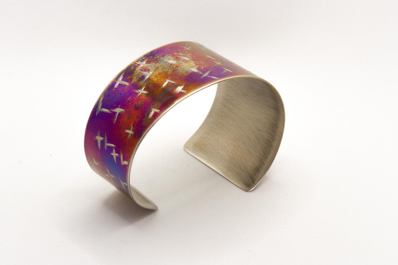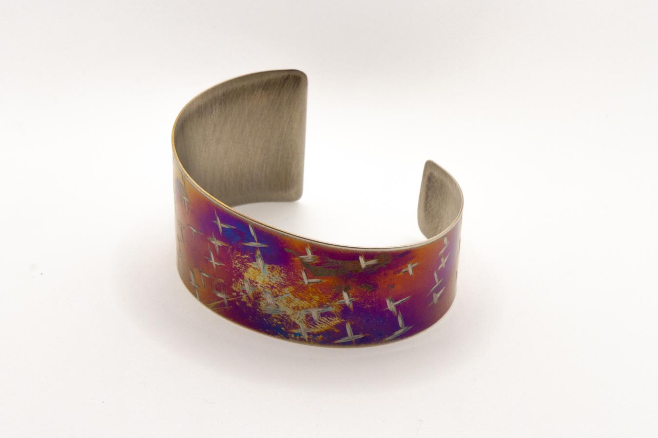 Bracciale a triangolo in acciaio ossidato con lavorazione. Misura adattabile