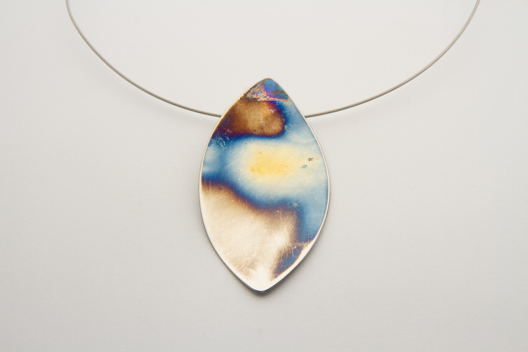 Collana con pendaglio mobile leggermente incurvato, a forma di foglia, in acciaio ossidato