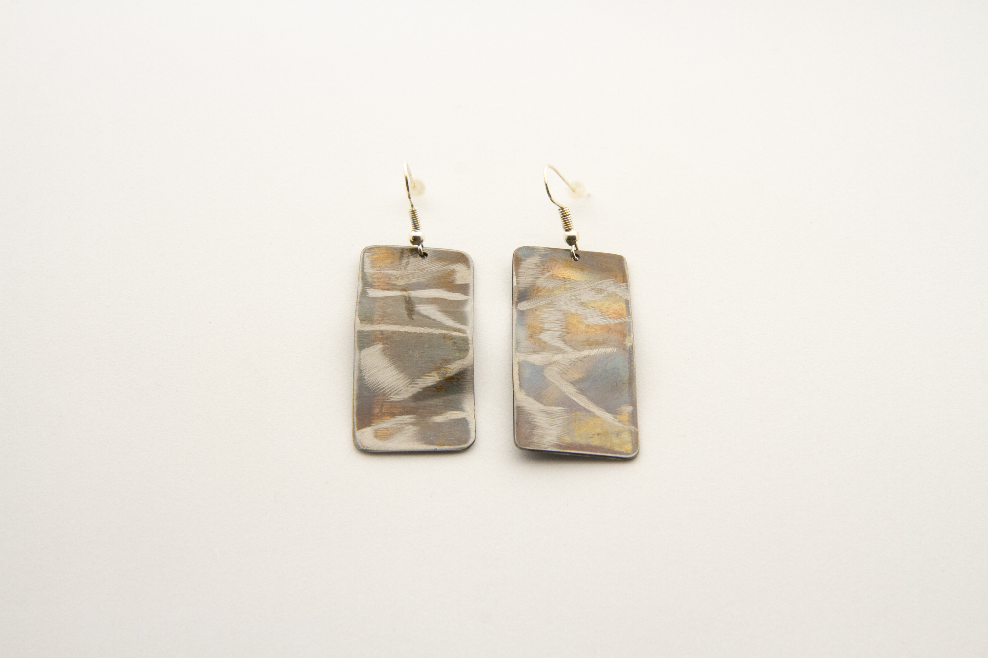 Orecchini ondulati a rettangolo in acciaio ossidato, con lavorazione
