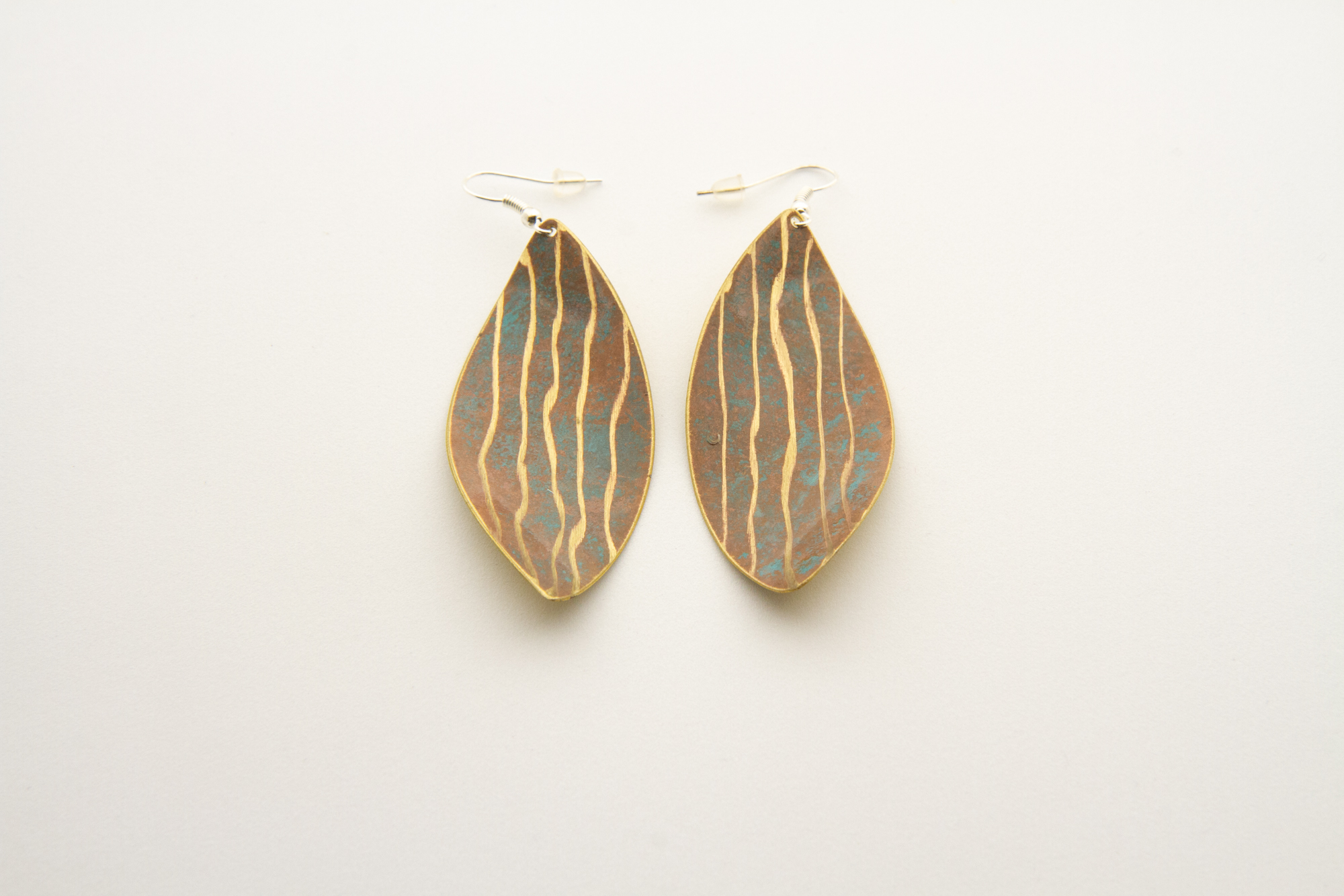 Orecchini a foglia ossidati a freddo con lavorazione