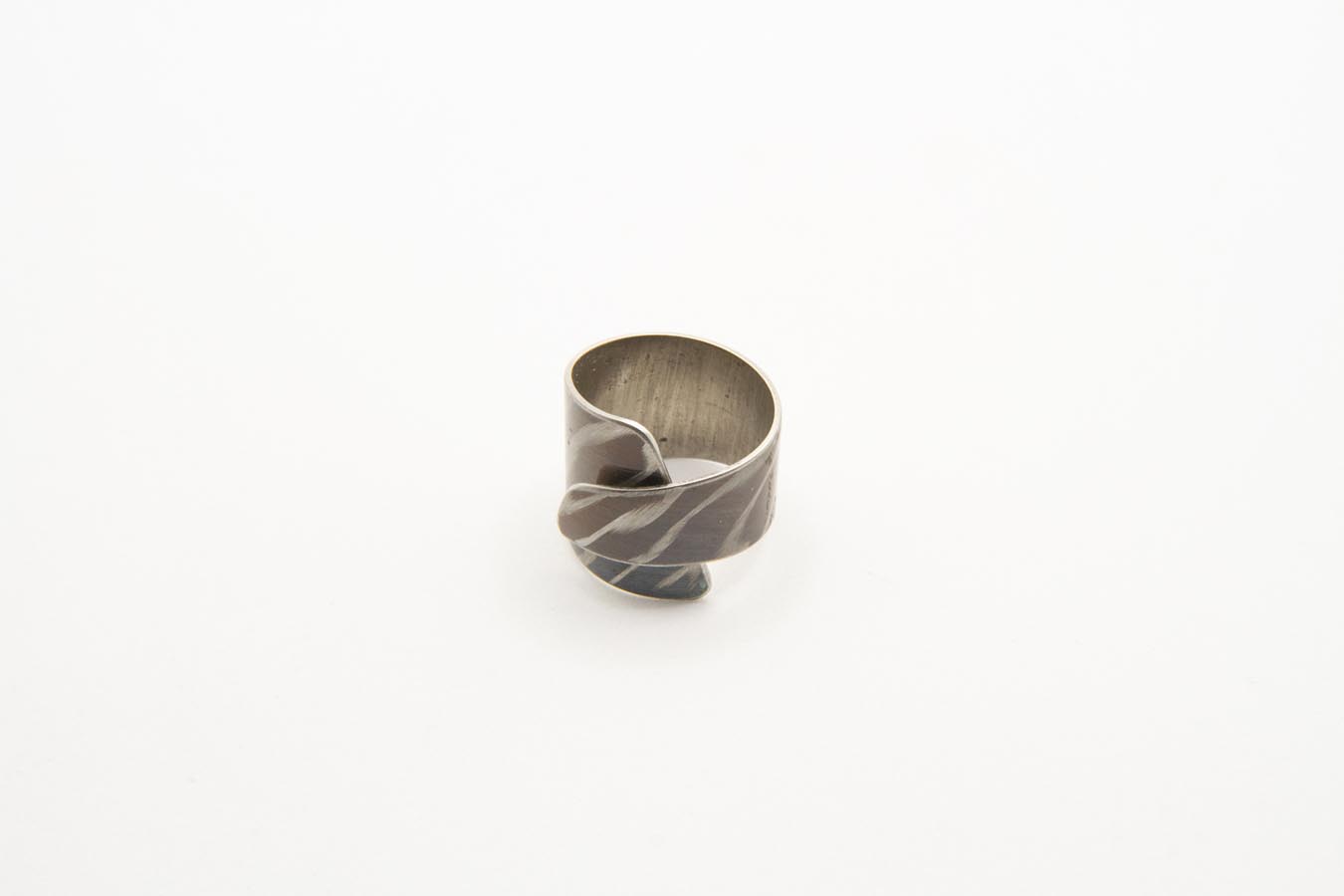 Anello con sovrapposizione realizzato in acciaio ossidato, con lavorazione