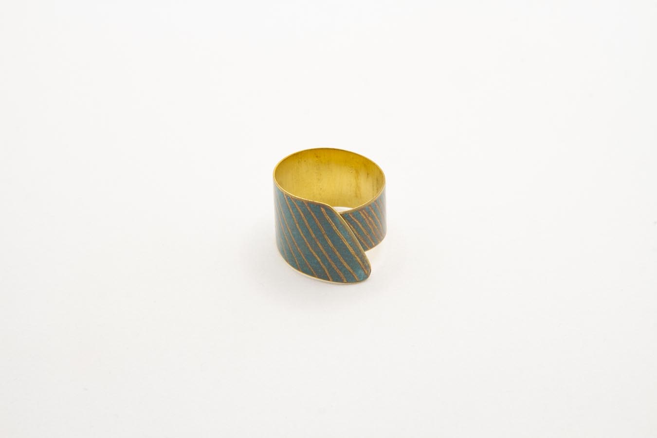 Anello realizzato in ottone ossidato, con lavorazione a righe incise