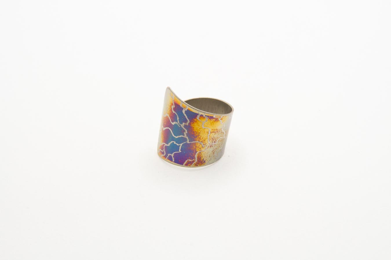 Anello fasciante in acciaio ossidato con incisione a motivi ramificati. Misura regolabile