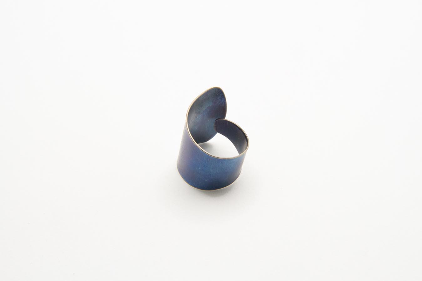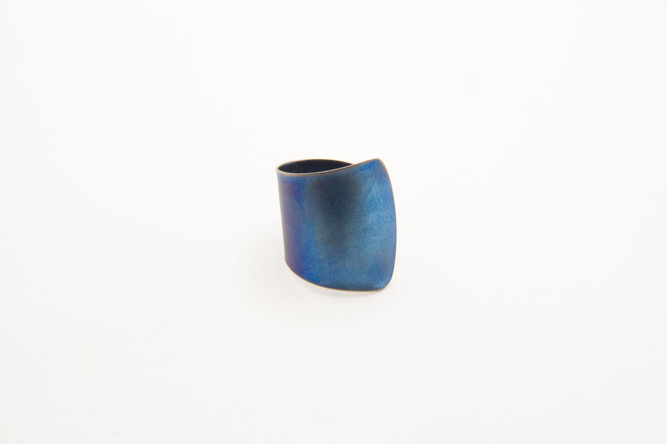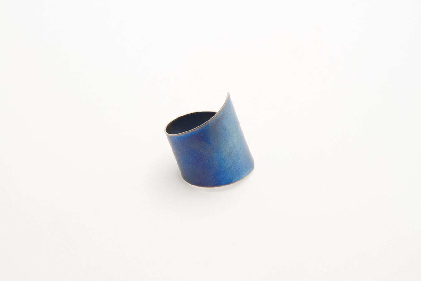 Anello fasciante realizzato in titanio ossidato a caldo. Misura regolabile.