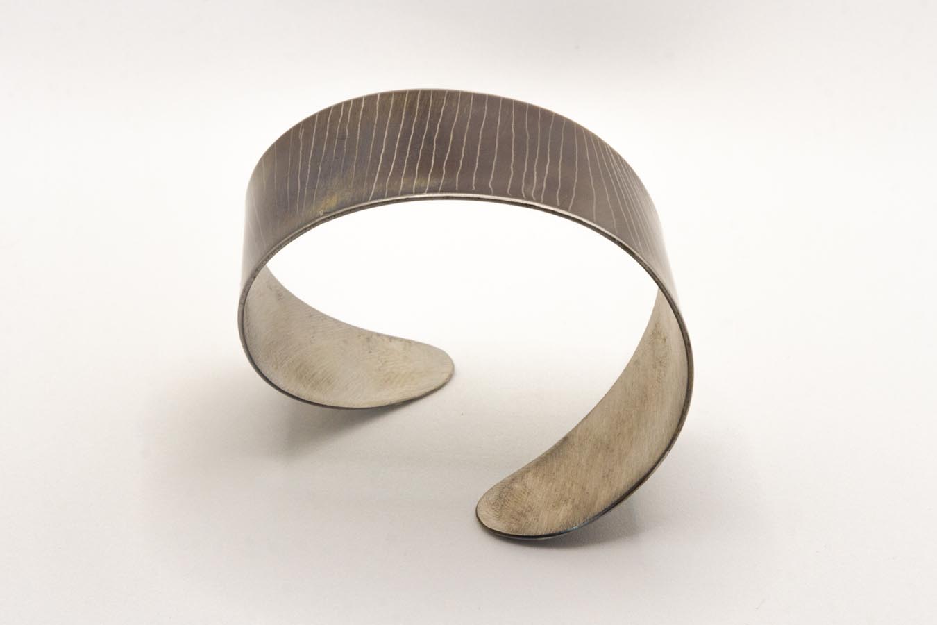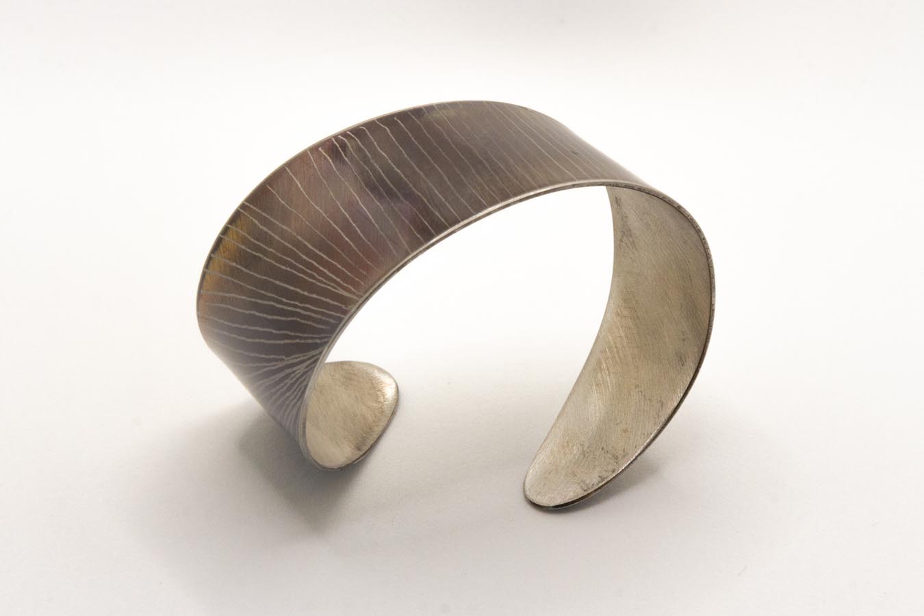 Bracciale in acciaio ossidato con lavorazione ad incisione a righe