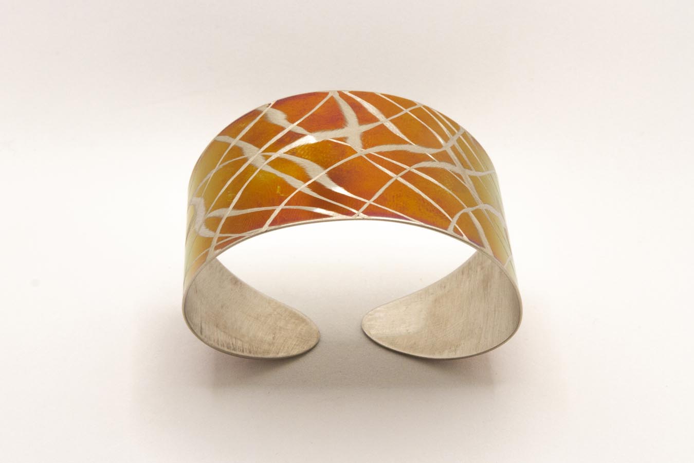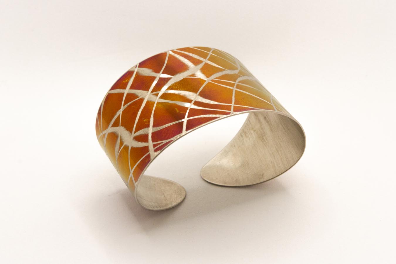 Bracciale a fascia in acciaio ossidato viola, con lavorazione
