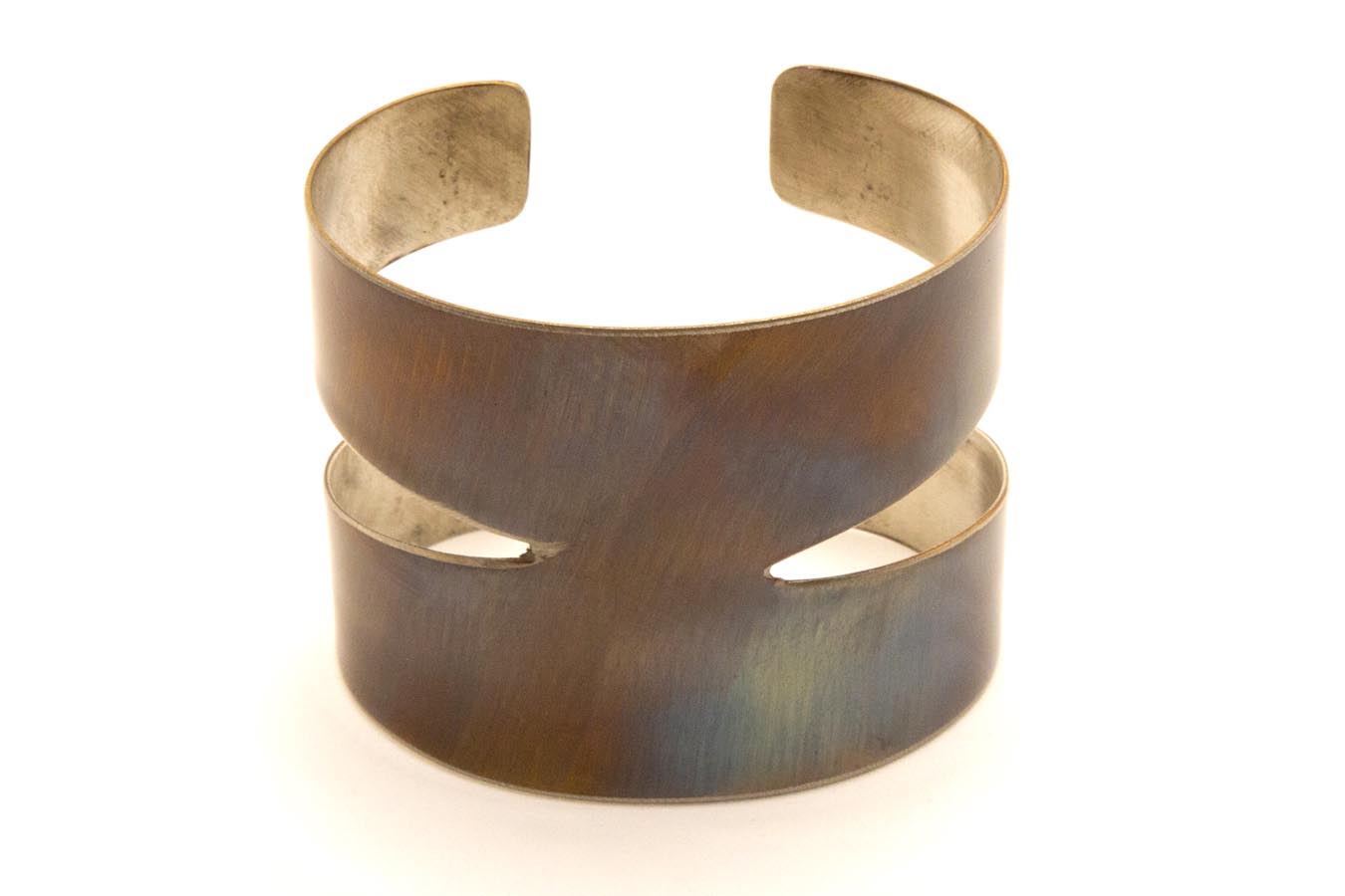 Bracciale tipo schiava in acciaio ossidato, senza lavorazioni.