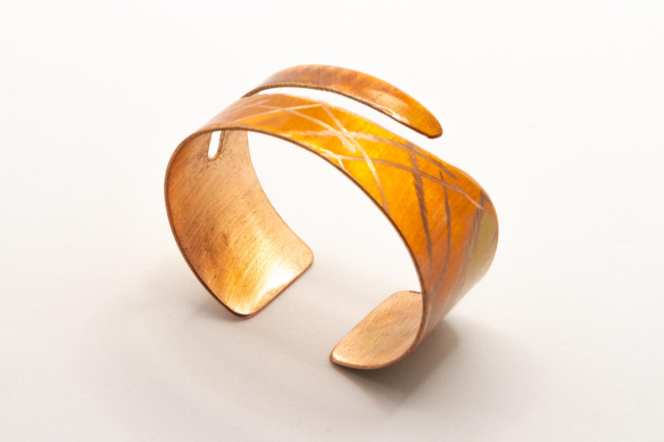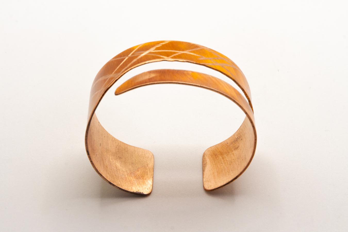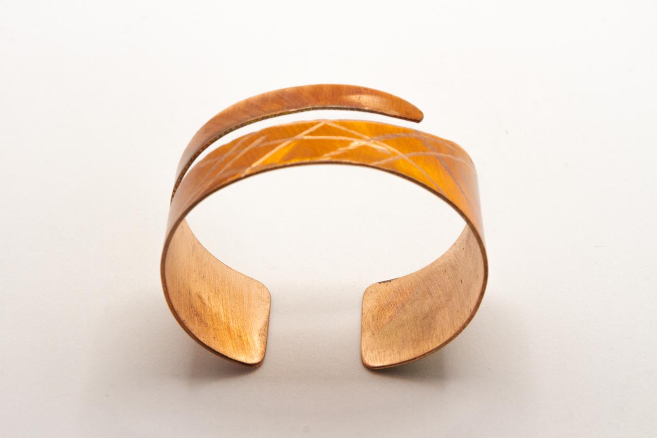 Bracciale in rame ossidato a caldo con lavorazione. Misura media adattabile.
