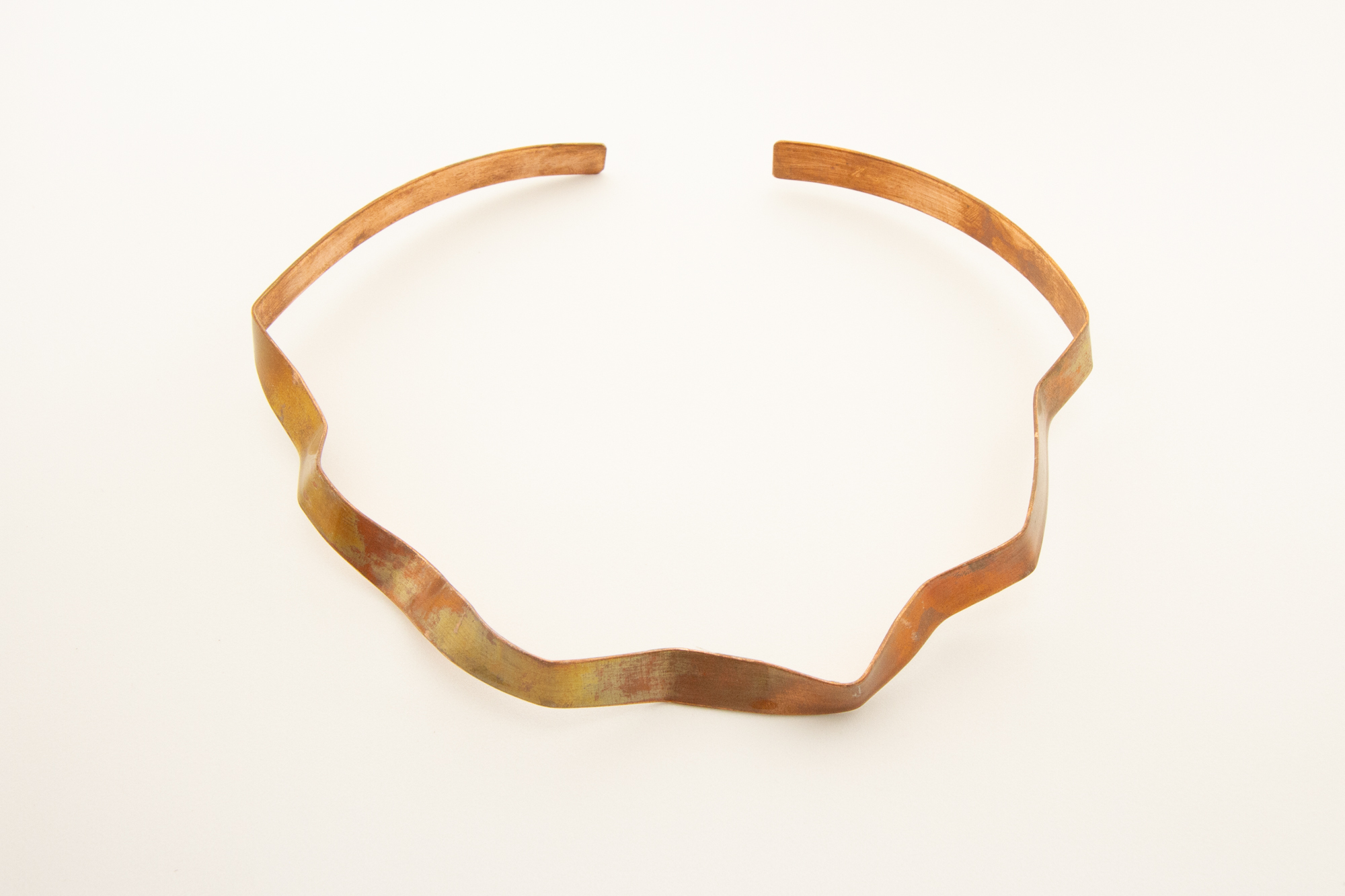 Collana semirigida girocollo in rame ossidato a caldo, ondulata, con apertura posteriore