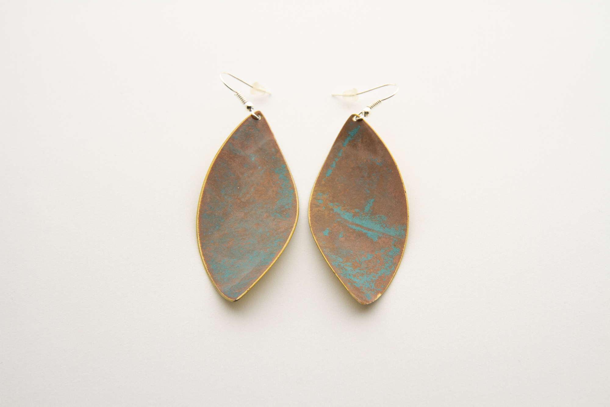 Orecchini a foglia in rame ossidato a freddo senza lavorazione