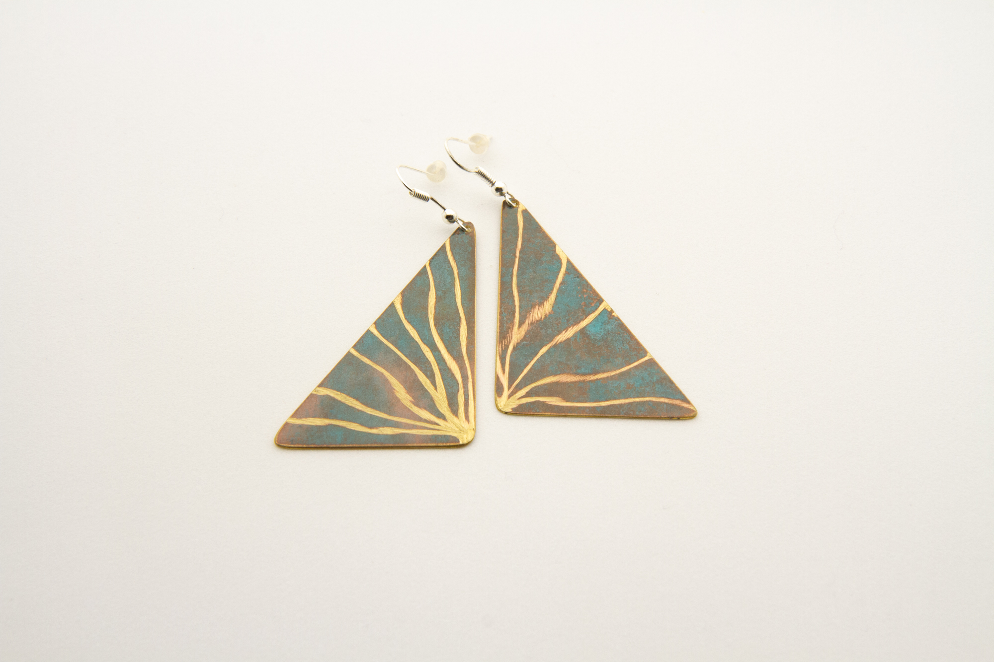 Orecchini a vela in rame ossidato a freddo con lavorazione